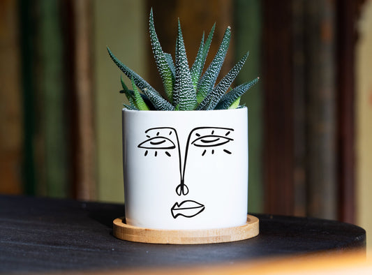 Face Planter - 3" White Ceramic Pot w/ Tray - Kitchen Decor, Living Room Decor, House Warming Gift box, New Home Basket - Gift For Her