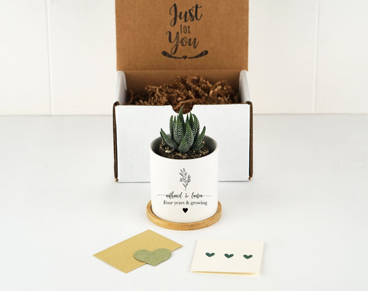 Anniversary Gift - 3" White Ceramic Pot w/ Bamboo Tray, Custom Succulent Pot, Wedding Anniversary Gift, Gift to the mother of the bride