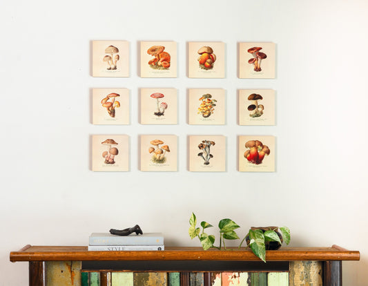 Mushroom Wall Decor, Mushroom Art, Whimsical Wall Art, Nature Home Decor, Living Room Art Print - Set of 6" x 6" Wooden Photo Blocks